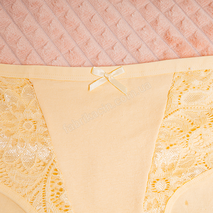 Трусы из мягкого хлопокового трикотажа, средння посадка, с боковыми вставками кружева. Материал: 95% хлопок, 5 % спандекс.