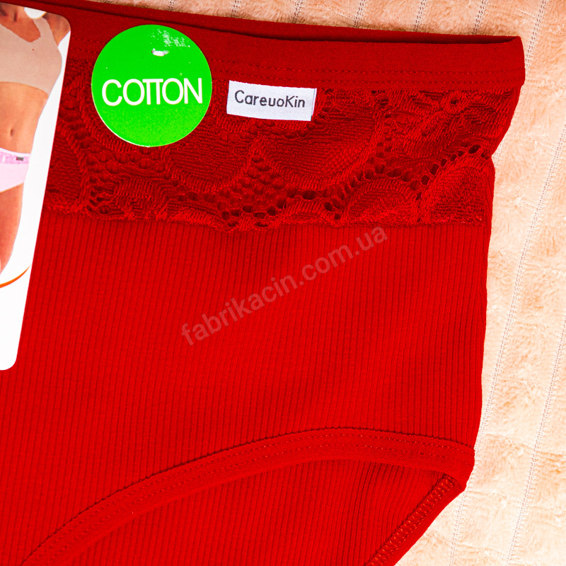 Трусики женские в рубчик, с кружевом, состав: 95% хлопок 5% спандекс