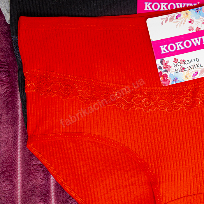 Трусы в рубчик с кружевом р-р: 54; 56; 58 цвет: красный