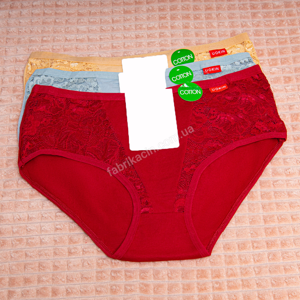 Трусики Uokin хб гипюр 48 - 54, цвет: бордовый