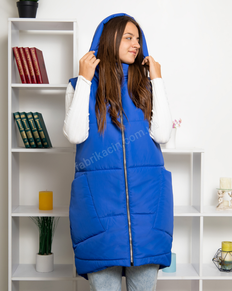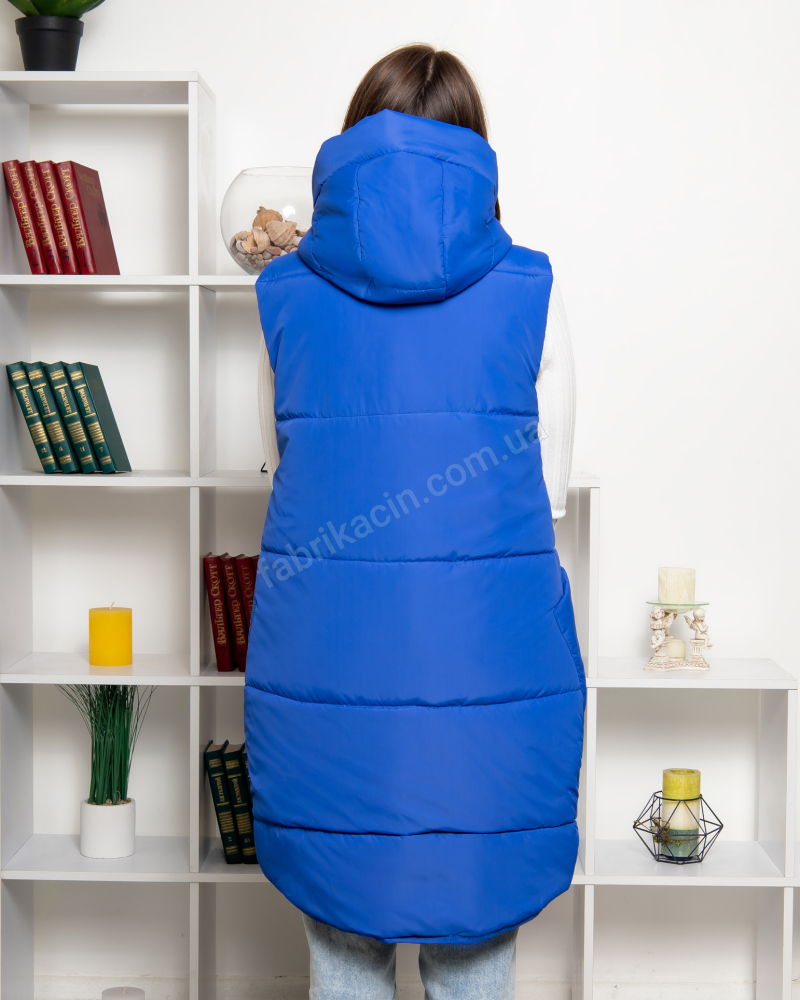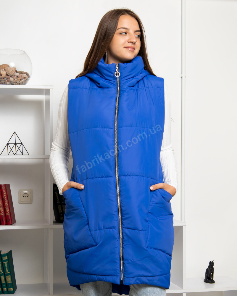 Жилетка женская удлиненная с капюшоном, ткань: плащевка "Эмми" - прочная ветронепродуваемая и непромокаемая эта стильная модель для эффектного дополнения и Вашего утепления в любой сезон. Наполнение - синтепон 200 (наилучший и теплый, хорошо сохраняет тепло тела) застежка на молнию, высокий воротник, два наружных накладных кармана размеры: 48-50; 50-52; 52-54