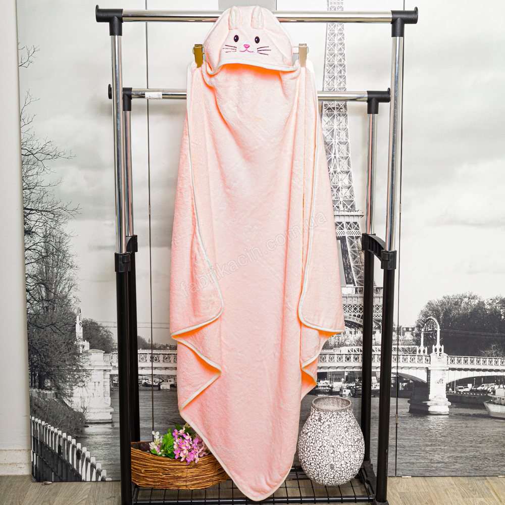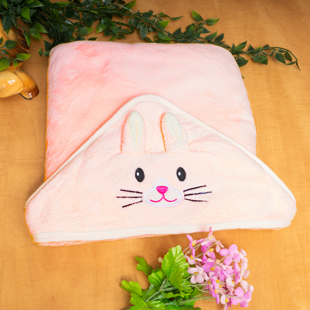 Дитячий рушник куточок після купання. Виготовлений з мікрофібри, що добре вбирає вологу. М'який та приємний на дотик. Капюшон зайчик, який захистить дитину від переохолодження. Розмір 110х110. Чудовий подарунок для вашої малечі
