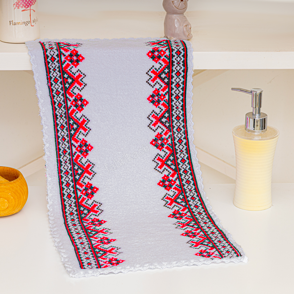 Кухонний рушник-серветка з мікрофібри, відмінно вбирає вологу, швидко сохне і не залишає розводів. Орнамент у традиційному стилі. Розмір 25х50, зручний формат для повсякденного використання. Дуже добре підходить для кухні, прибирання, протирання посуду і побутової техніки.