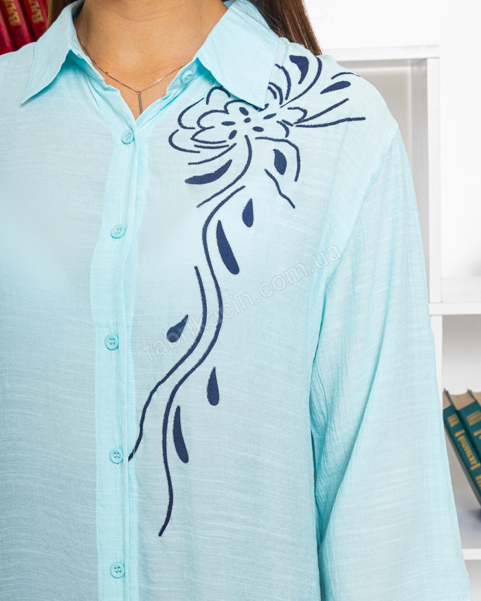 Сорочка на гудзику подовженна мерехтлива квітка 50 - 56 колір: бірюзовий