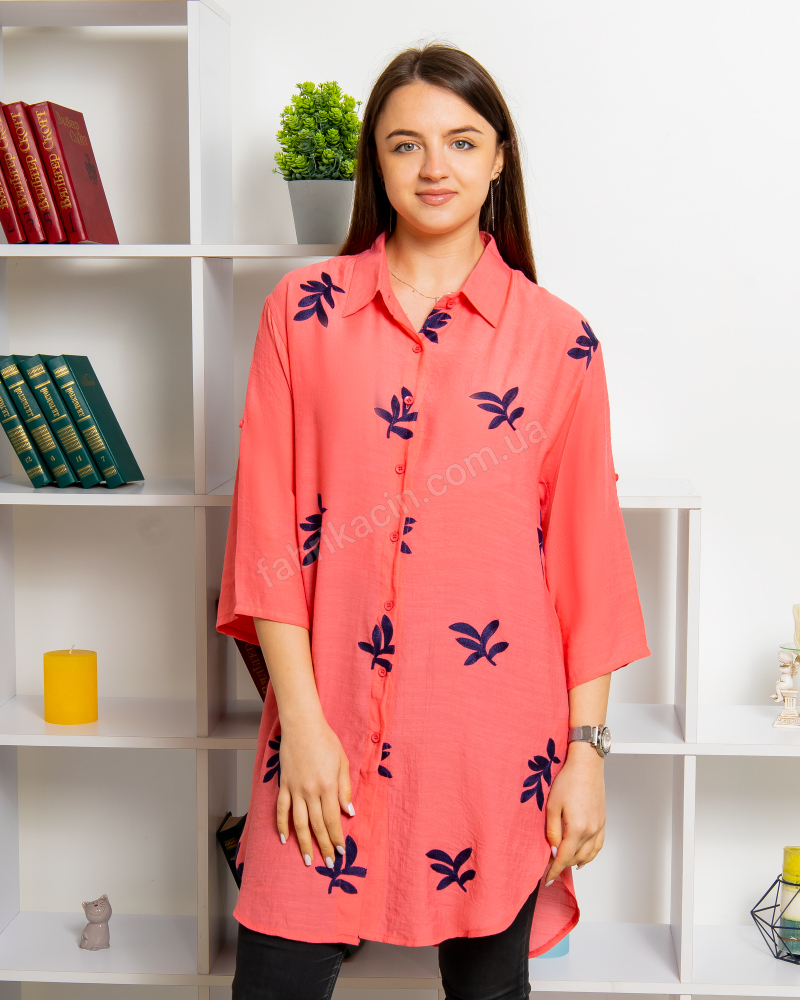 Сорочка подовженна вишита Гілочка 50-52-54-56 колір: кораловий