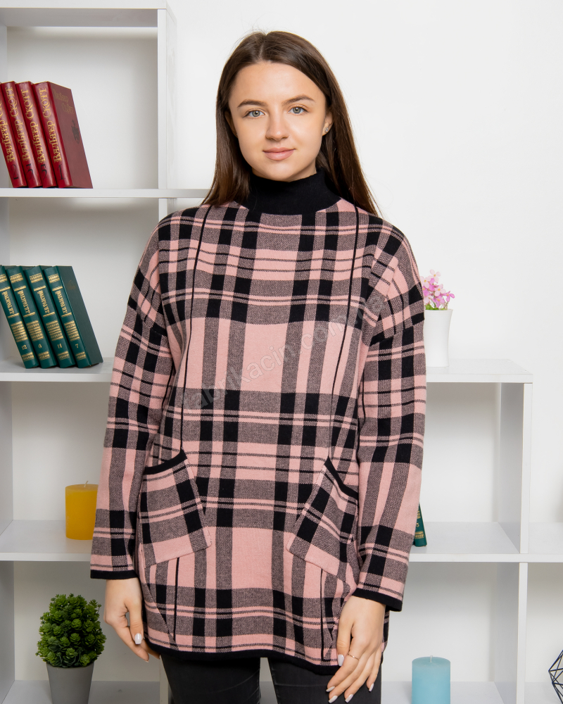 Светр клітка кишеня приспущений рукав 50:52; 52-54 колір: пудровий