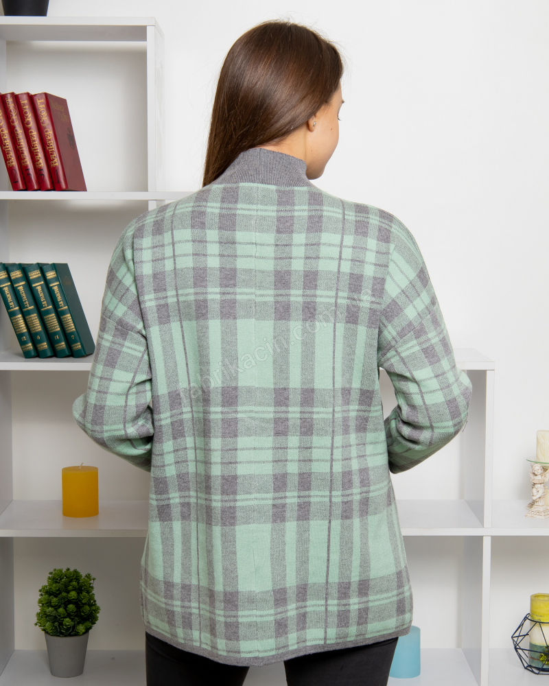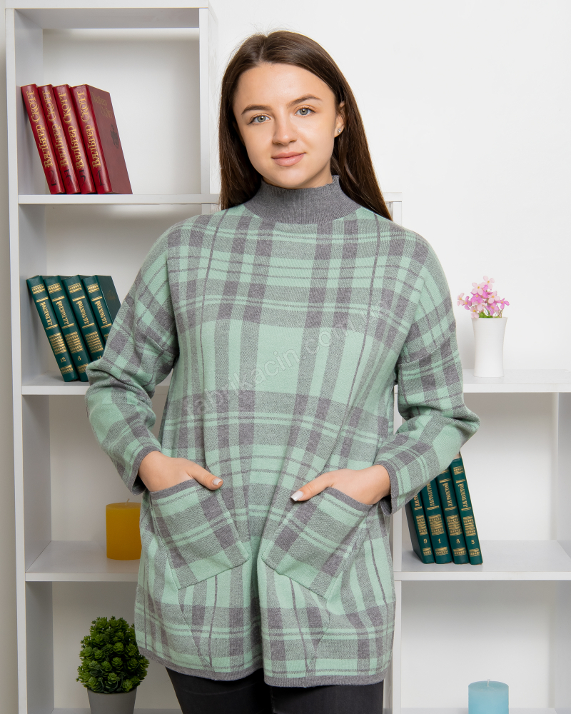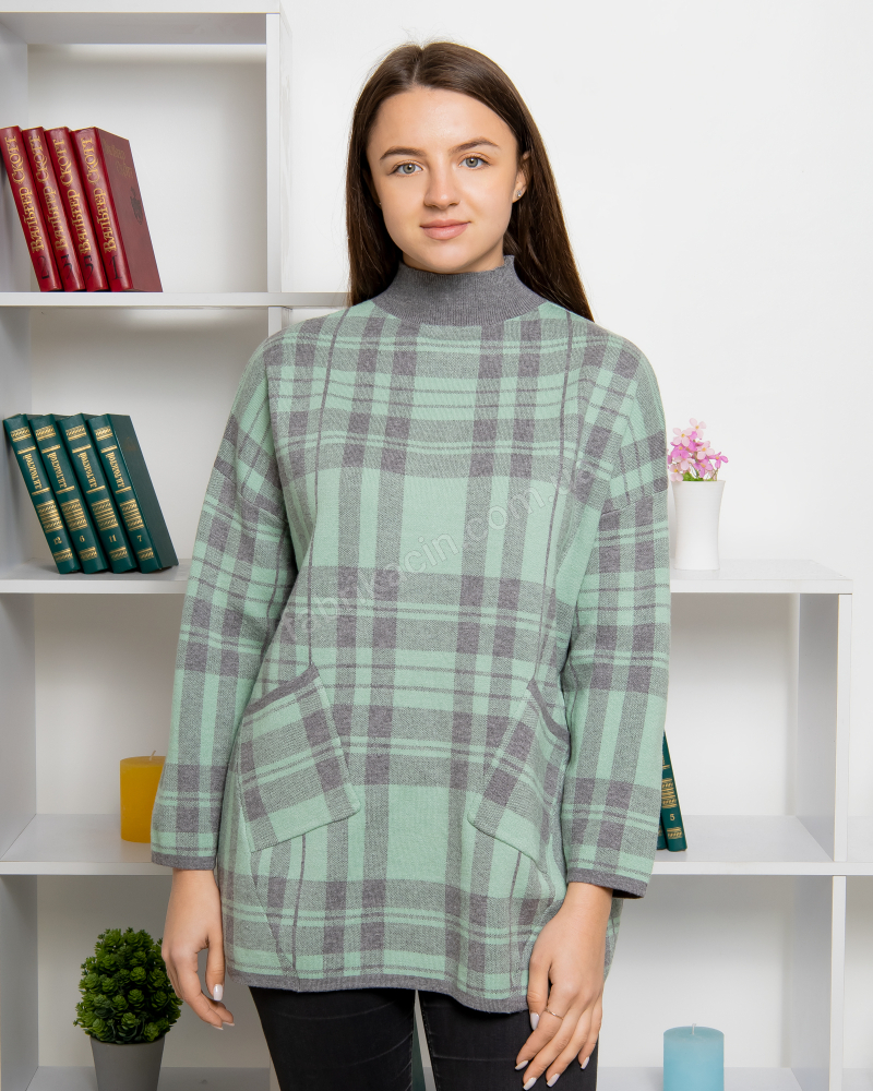 Светр клітка кишеня приспущений рукав 50:52; 52-54 колір: зелений