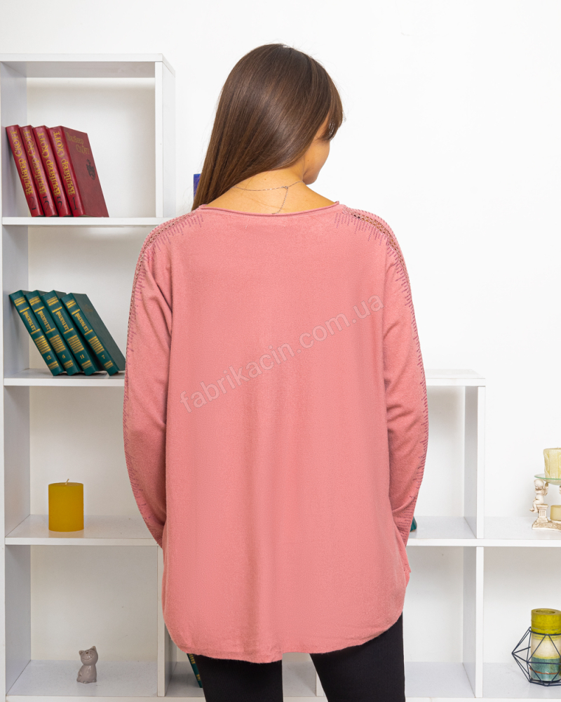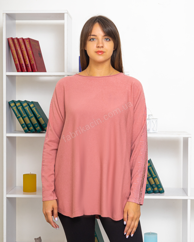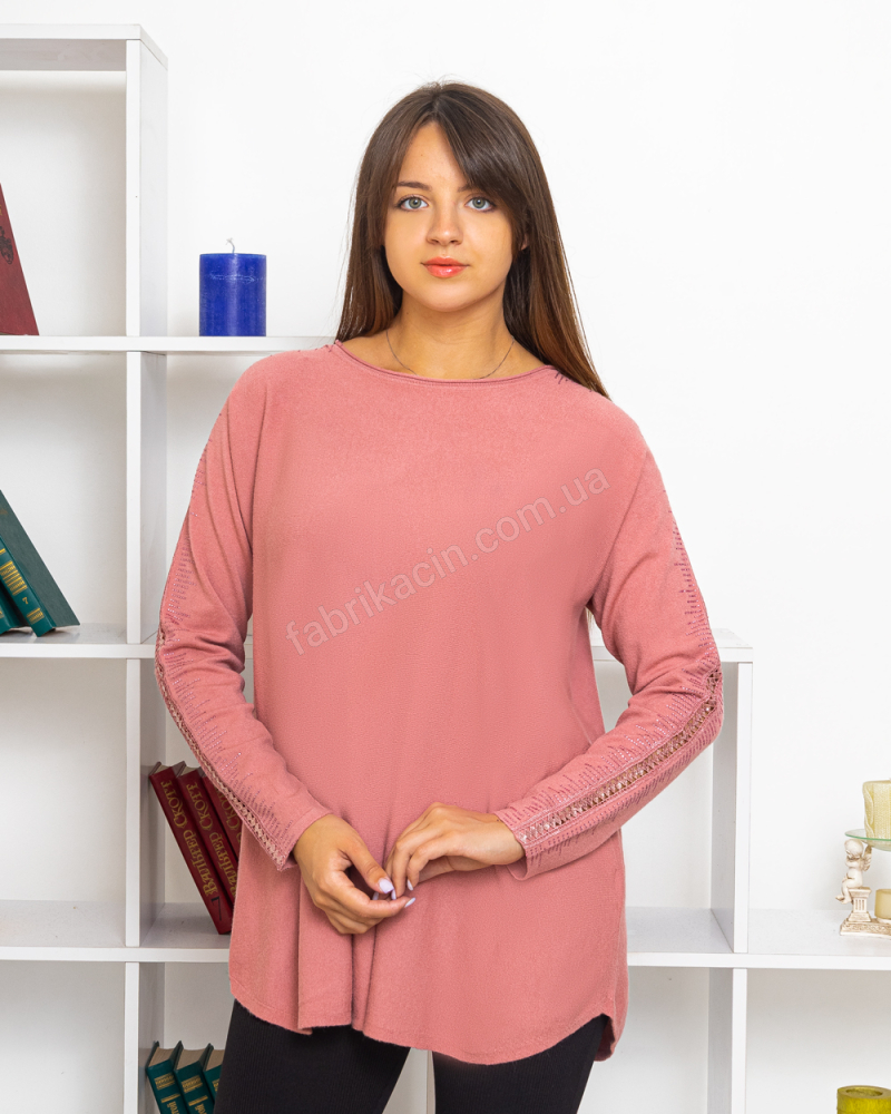 Светр з стразами на рукаві 52 - 54, колір: пудровий