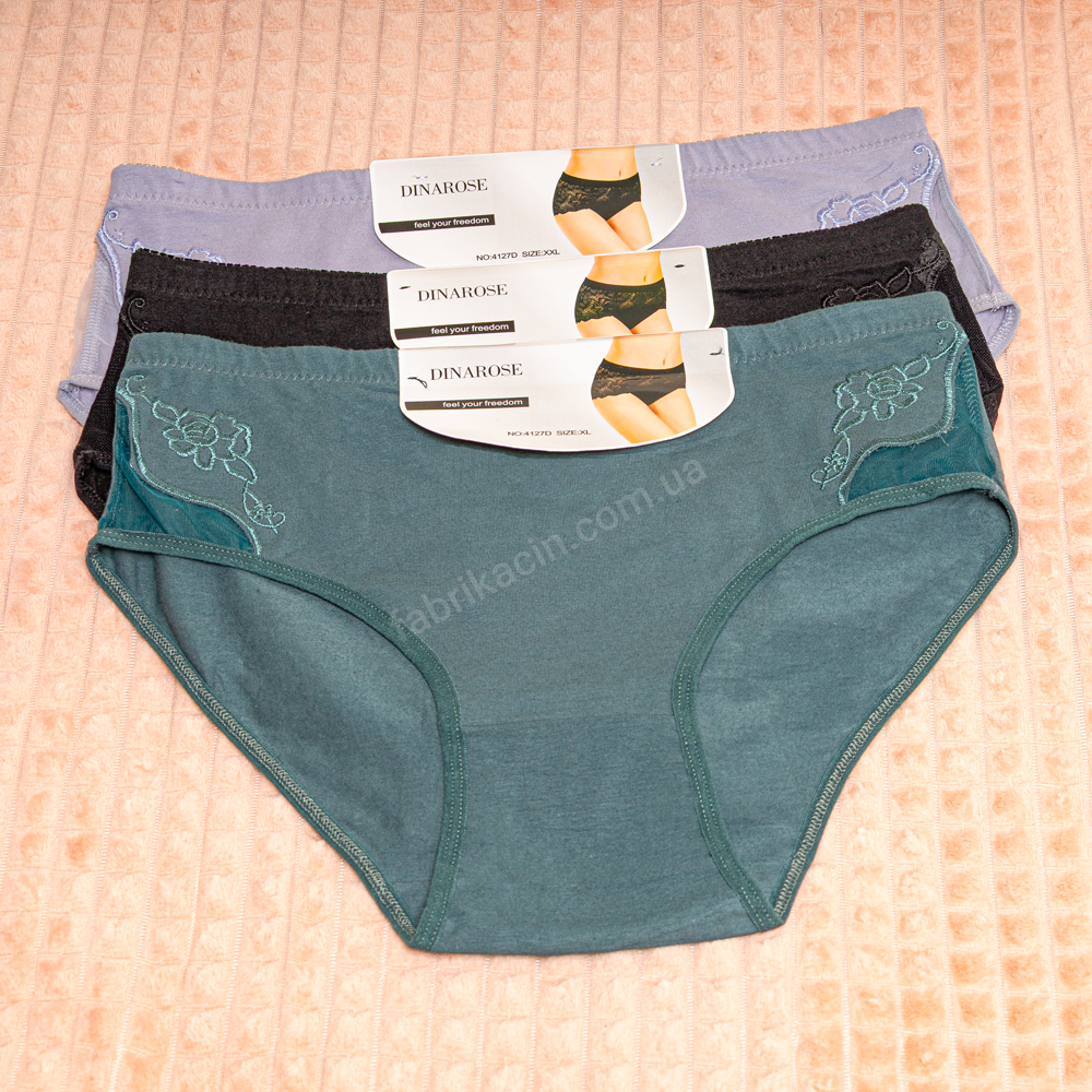 Трусики жіночі трикотажні, середня посадка, вишита квітка, по боком вставка сіточка, склад: 95% COTON 5% SPANDEX