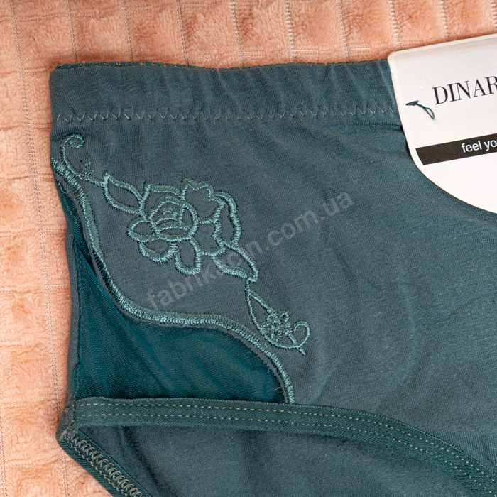 Трусики жіночі трикотажні, середня посадка, вишита квітка, по боком вставка сіточка, склад: 95% COTON 5% SPANDEX